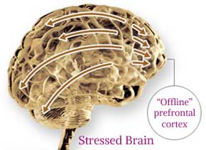 El estrés, la presión, la fatiga, la mala alimentación, el alcohol y las drogas dañan las conexiones neuronales entre la corteza pre frontal del cerebro o el "CEO", el Director Ejecutivo del Cerebro y el resto del cerebro. Cuando se está sobre fatigado o bajo un intenso estrés mental o físico, el cerebro no activa sus circuitos frontales racionales más evolucionados. En consecuencia, respondemos a las demandas diarias sin pensar; tomamos decisiones impulsivas, a ciegas. Cuando el Director está " fuera de línea", las emociones fuertes, como el miedo y la ira, toman el control, coloreando negativamente nuestra visión del mundo.